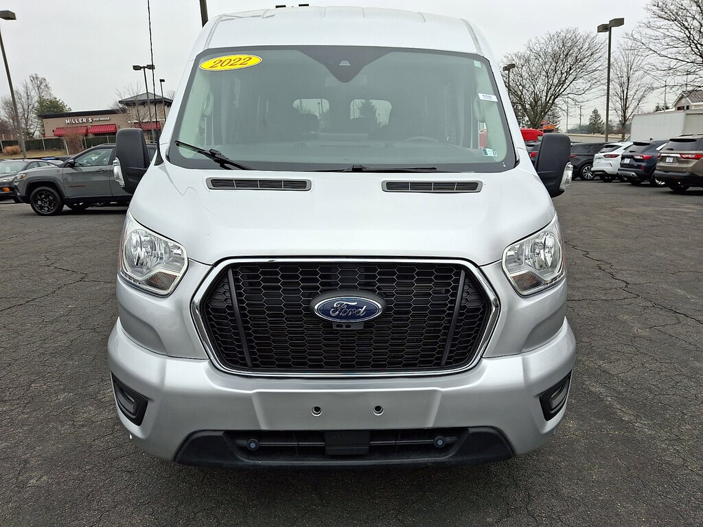 Move people in comfort and confidence with this 2022 Transit 350 Mid Roof Passenger Van from Ford. Designed for durability and versatility, this van is ideal for shuttle services, churches, schools, teams, and large families.